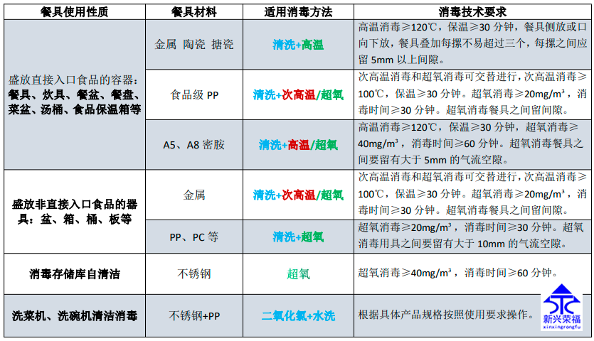 水洗后的餐具達不到衛(wèi)生標準要求(即便是使用了消毒液后也不能完全殺滅細菌和病毒),還需進行干燥和消毒,目前餐飲行業(yè)多采用高溫?zé)犸L(fēng)循環(huán)消毒方法,通過熱風(fēng)循環(huán)可將餐具加熱到120℃以上,使餐具上殘留的細菌和病毒發(fā)生蛋白質(zhì)變質(zhì)而失去活性,熱風(fēng)消毒庫操作簡單,對餐具擺放要求相對較低,消毒效率高,適合金屬、陶瓷類餐具的高溫消毒。 但是也會有些餐具不適合高溫消毒,高溫情況下發(fā)生了嚴重變形甚至是熔化,因此新興榮福消毒庫增加了超氧消毒的功能。